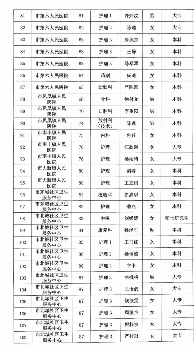 根据《2024年张家港市卫生健康系统事业单位公开招聘编外合同制卫技人员公告》,经公开报名、考试、体检、考察(政审)和公示合格,夏婷婷等147名同志符合本次招聘录用条件。