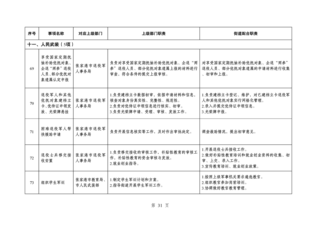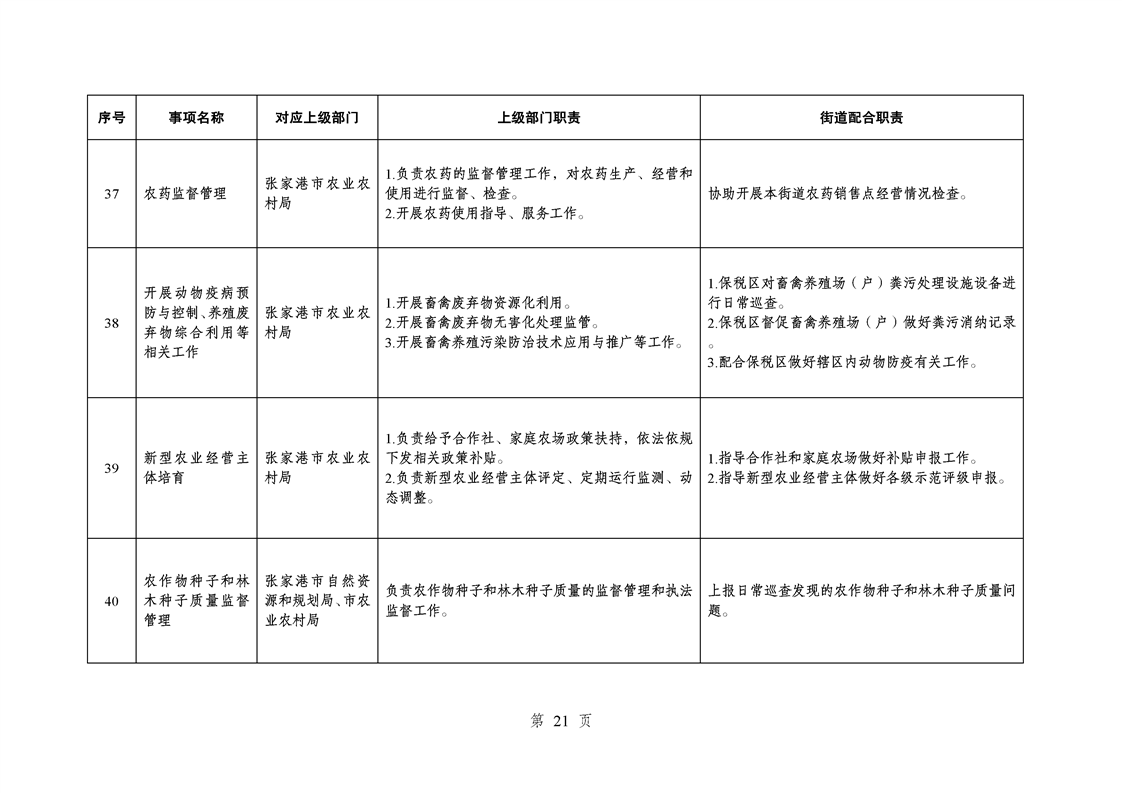 江苏省苏州市张家港市后塍街道履行职责事项清单