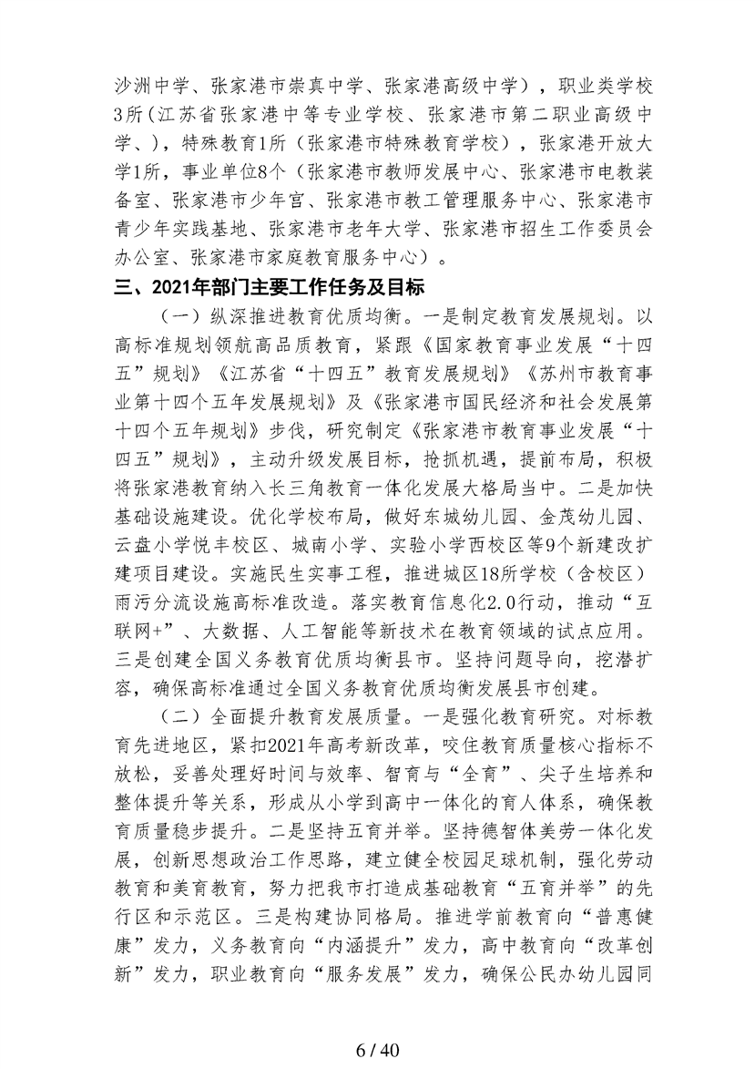 张家港市教育局2021年度部门预算