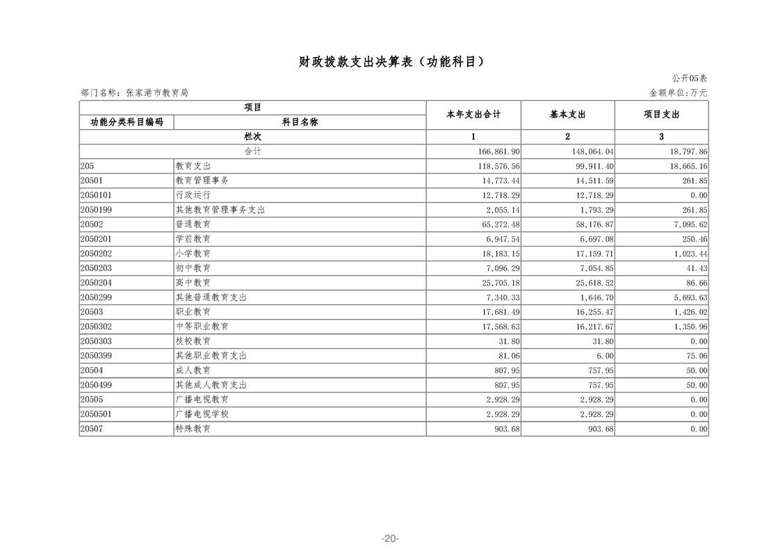 张家港市教育局2020年度部门决算