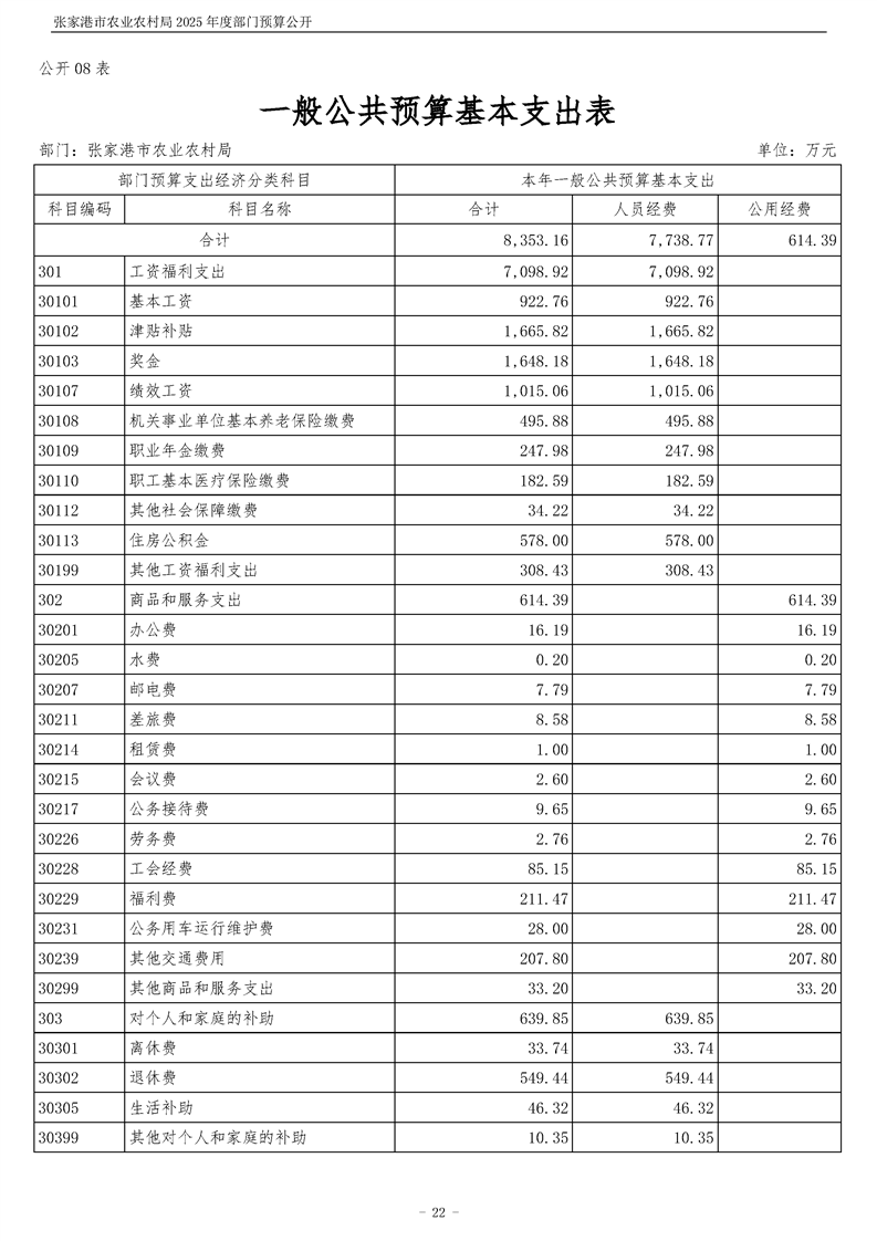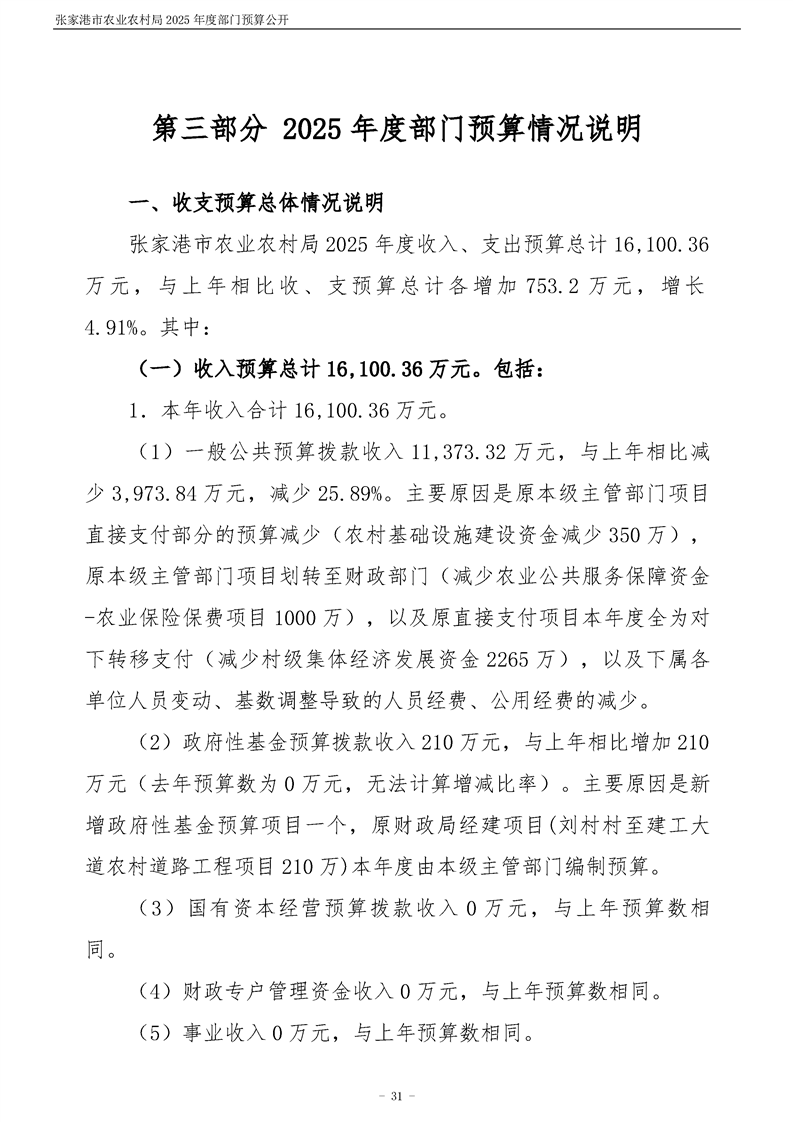 张家港市农业农村局2025年度部门预算公开