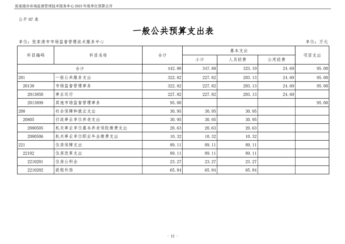 2023年度张家港市市场监督管理技术服务中心单位预算公开