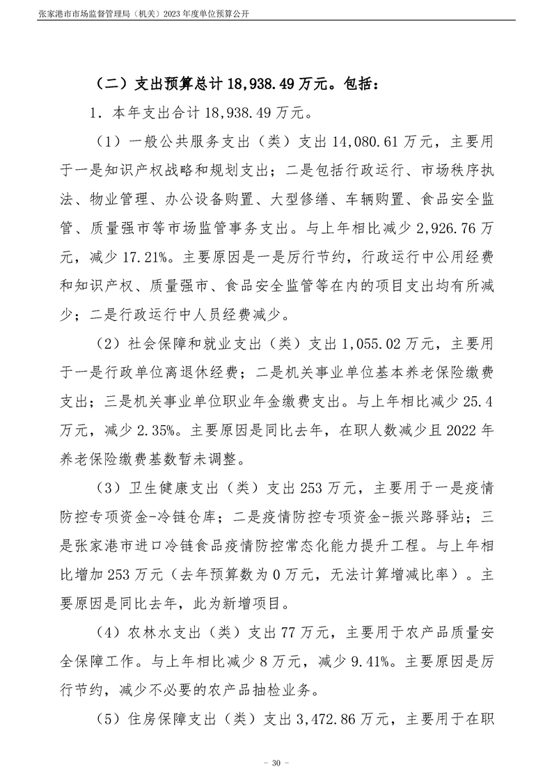 2023年度张家港市市场监督管理局(机关)单位预算公开