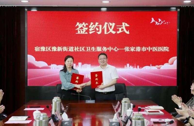 签约仪式上,市中医医院与宿豫区豫新街道社区卫生服务中心签订帮扶合作协议。