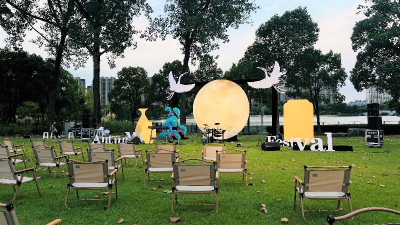 夕阳的余晖轻洒在柔软的草坪上,为这场音乐会披上了一层金色的纱幔。精心布置的现场,每一处细节都透露着对自然绿地的尊重与热爱。