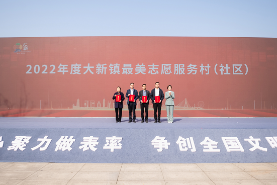 主持人:感谢沈镇长,请就座。下面,有请2022年度大新镇最美志愿服务村(社区)负责人上台!