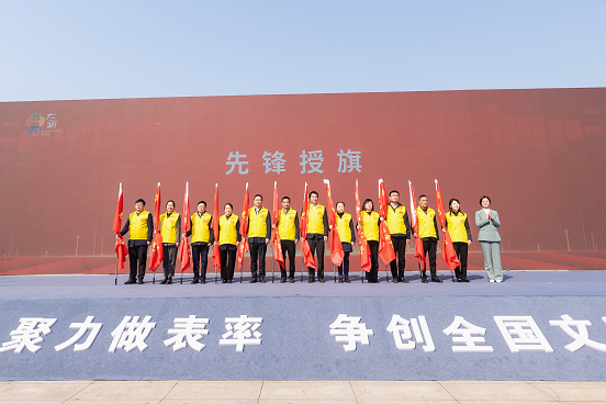 主持人:赵书记请就座,各位书记请留步。今天的先锋授旗,就是大新争创全国文明镇的出征令,我们将心往一处想、劲往一处使,和衷共济、众志成城再出发。仪式结束后,各班子成员将赴蹲点村(社区)开展“洁美大新”义务劳动,以实际行动践行志愿服务精神。