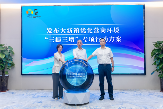 接下来,让我们以热烈的掌声,有请市委常委、市纪委书记、市监委主任王永学,市城市管理局党委书记、局长黄晟,大新镇党委书记赵瑜共同上台,为我们启动大新镇优化营商环境“三提三增”专项行动!3,2,1,启动!大新镇优化营商环境“三提三增”专项行动正式启动!