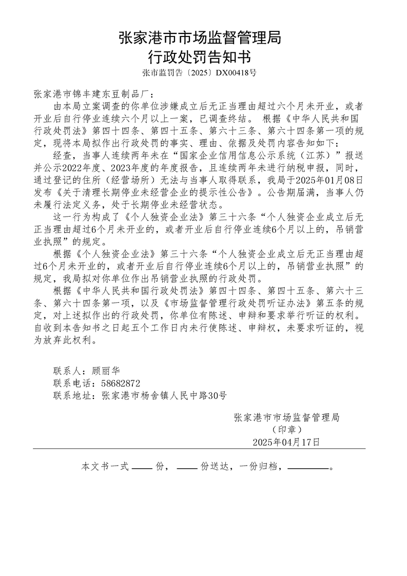 张家港市市场监督管理局行政处罚告知公告(个人独资企业)