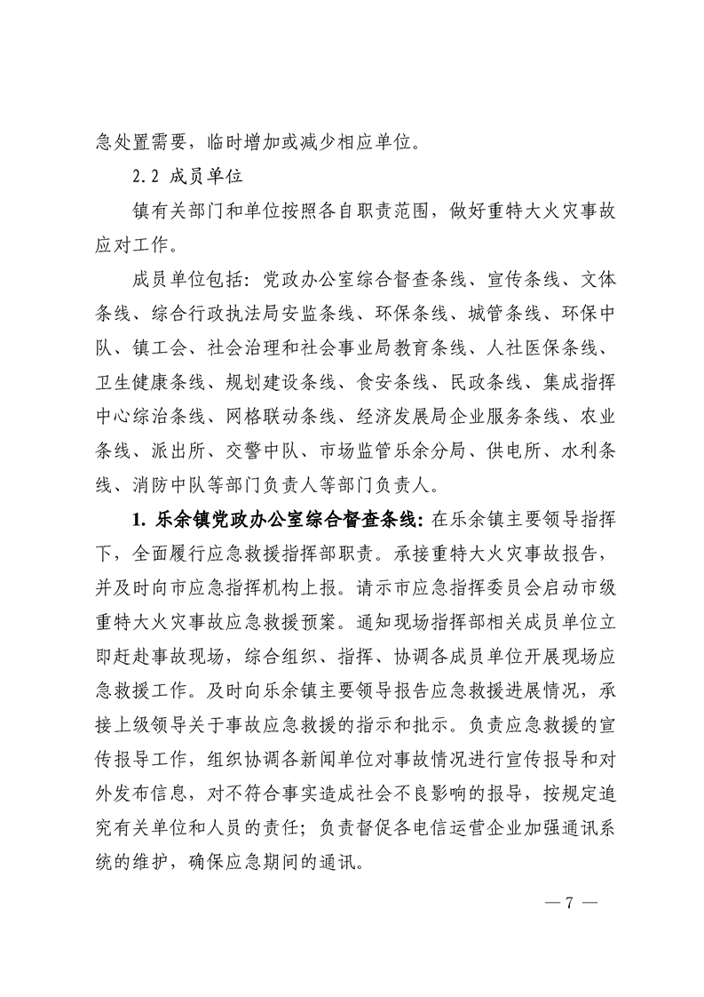 乐党政办发〔2022〕28号关于印发《乐余镇重特大火灾事故事故应急预案》的通知